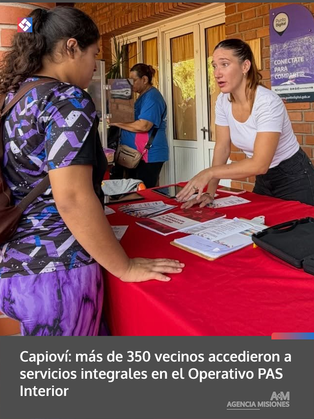 Durante la jornada de ayer, alrededor de 350 vecinos de Capioví se beneficiaron con el Operativo PAS Interior, una iniciativa que acercó múltiples prestaciones de manera gratuita a la comunidad. La actividad permitió facilitar el acceso a servicios esenciales en un solo lugar, con una importante participación de profesionales y organismos provinciales.